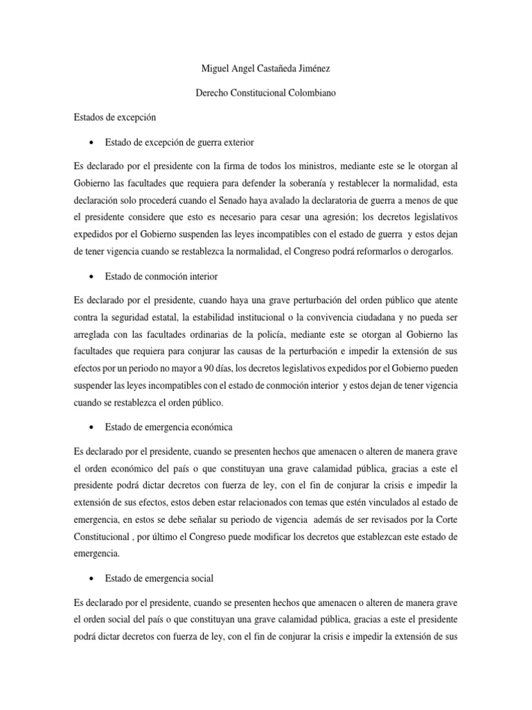 Los estados de excepción y el control de constitucionalidad en colombia. El estado de excepción en cualquiera de sus categorías, implica la suspensión de uno o varios derechos fundamentales para la ciudadanía. Este concepto de teoría política fue acuñado por el jurista alemán carl schmitt, constituido como la situación extrema del estado. Los estados de excepción colombia ¿qué es un estado de excepción? Venezuela y colombia comparten una frontera de 2.219 kilómetros por la que circulan de forma ilegal mercancías que, según venezuela, equivalen al 40 % de los productos destinados a su mercado interno y que se adquieren a bajos precios por las subvenciones estatales.